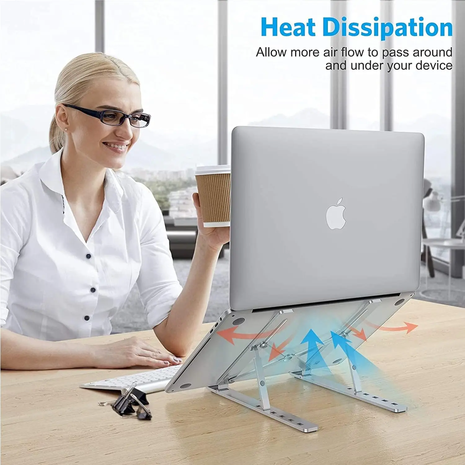 The open-design base and forward-tilt angle promote optimal airflow, preventing laptop overheating. Made from 100% aluminum alloy for efficient heat dissipation.